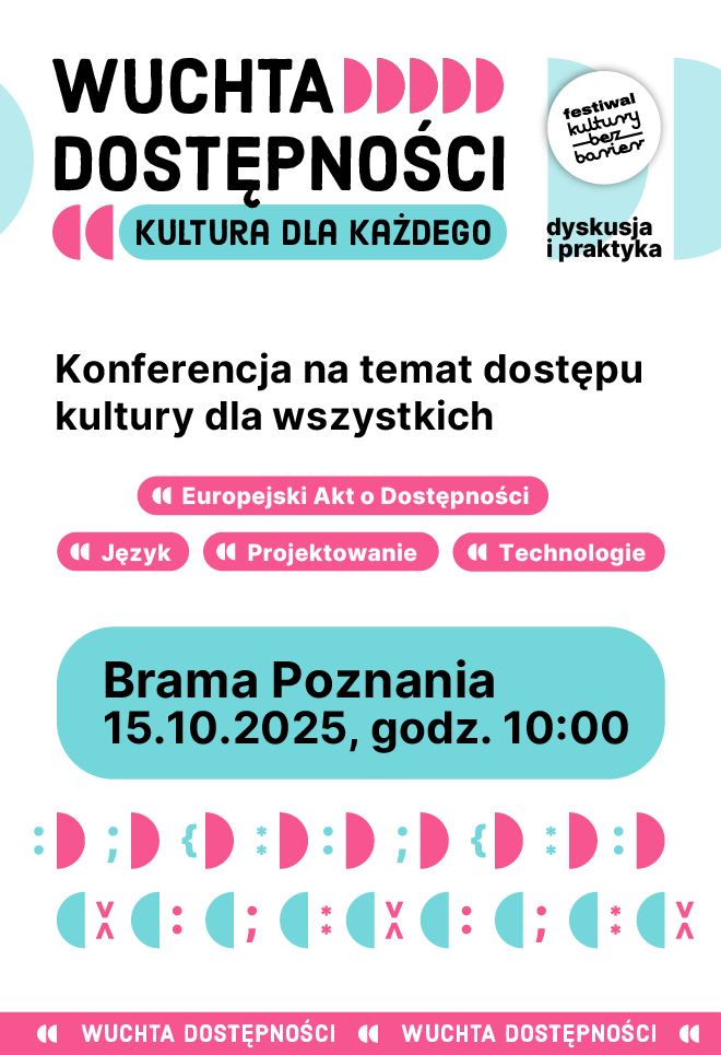 Wuchta dostępności. Kultura to pierwsze tego typu wydarzenie w Poznaniu. Jego pomysł zrodził się z potrzeby szczerej rozmowy o tym, co robić, aby kultura była otwarta dla wszystkich – bez barier, ograniczeń i wykluczeń.